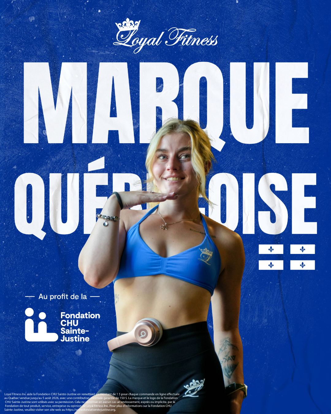 Loyal Fitness est une marque québécoise qui reverse 1 $ par commande à la Fondation CHU Sainte-Justine. Nous sommes toujours ouverts à accueillir de nouveaux ambassadeurs et ambassadrices. Partage du contenu en portant nos produits et profite des avantages exclusifs d’être membre de notre équipe !